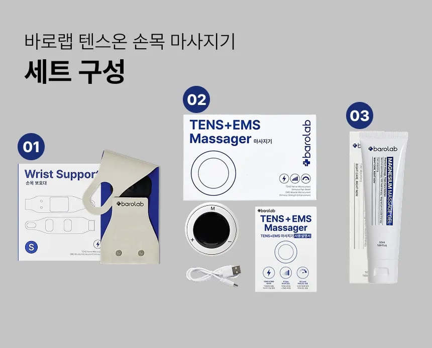 텐스온 마사지기는 물리치료사가 직접 자문 개발한 국내 최초 TENS+EMS 복합형 손목 마사지기입니다. 단순한 진동 마사지가 아닌 전기 신경·근육 자극 치료 개념을 적용하여, TENS로 통증 신호를 차단하고 EMS로 뭉친 근육을 깊숙이 풀어줍니다. 라이크라 코튼 소재의 보호대가 엄지 뿌리부터 손목까지 드퀘르벵 테이핑 방식으로 밀착 고정되며, 통증 완화부터 근육 강화, 혈액순환 개선까지 병원 물리치료와 같은 효과를 집에서 경험할 수 있는 프리미엄 손목 마사지기입니다.