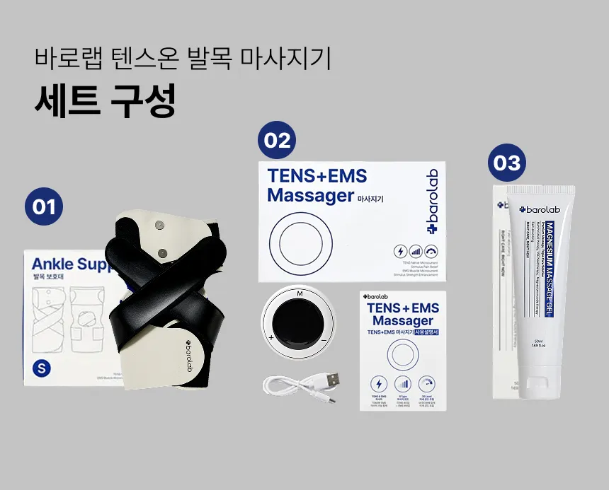 텐스온 디바이스 + 패키지 + 충전 케이블 + 사용 설명서